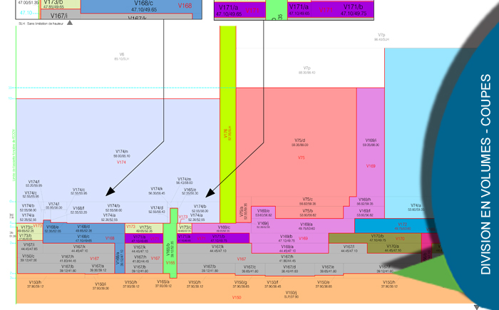 Sur la base d’un relevé de l’état des lieux ou de plans projet, nous établissons l’ensemble des documents nécessaires à la mise en place ou à la modification d’une division en volumes et/ou d’une copropriété.